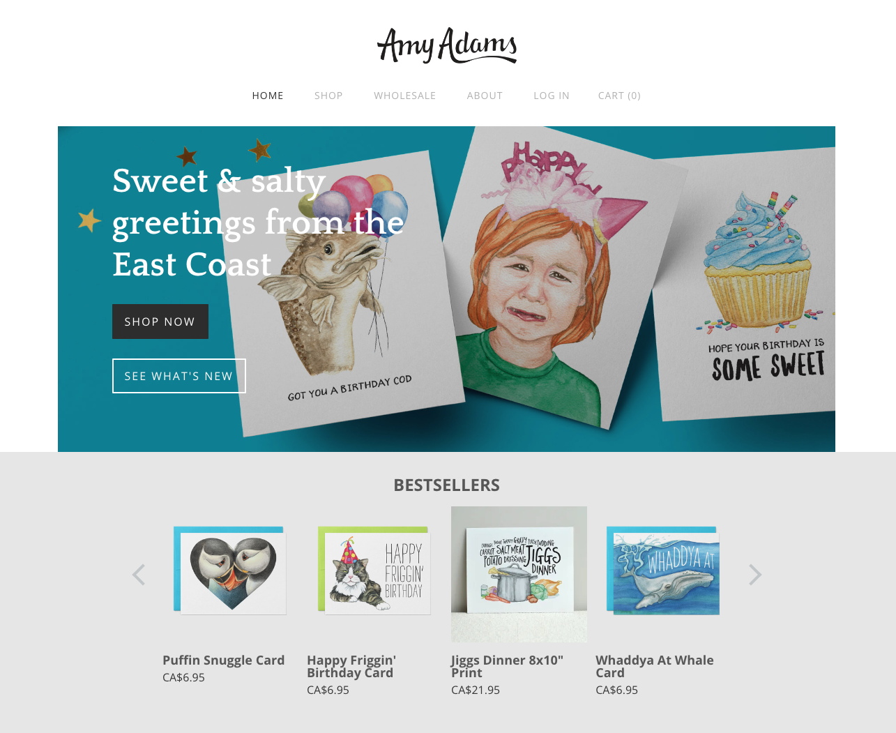 Sweet and salty greeting cards and prints from original artwork. Available for purchase in my online shops, as well as from a growing list of retailers throughout Atlantic Canada.